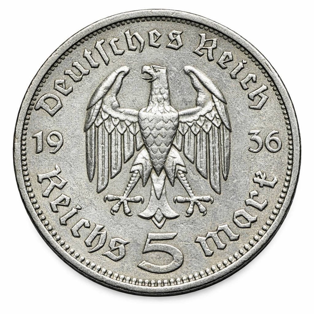 Historická nemecká strieborná minca s nominálnou hodnotou 5 Reichsmark pochádza z 30. rokov 20. storočia. Na prednej strane je zobrazený portrét prezidenta Paula von Hindenburga, významnej osobnosti nemeckých dejín.