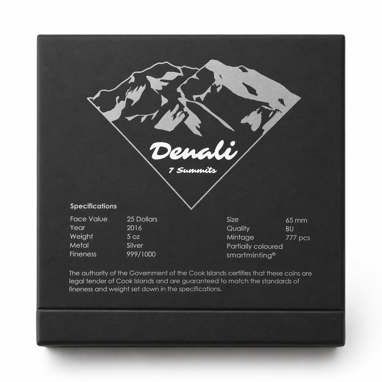 Táto strieborná minca patrí do série "The 7 Summits", ktorá zobrazuje najvyššie vrchy jednotlivých kontinentov. Konkrétne ide o Denali (6190 m) – najvyšší vrch Severnej Ameriky nachádzajúci sa na Aljaške.